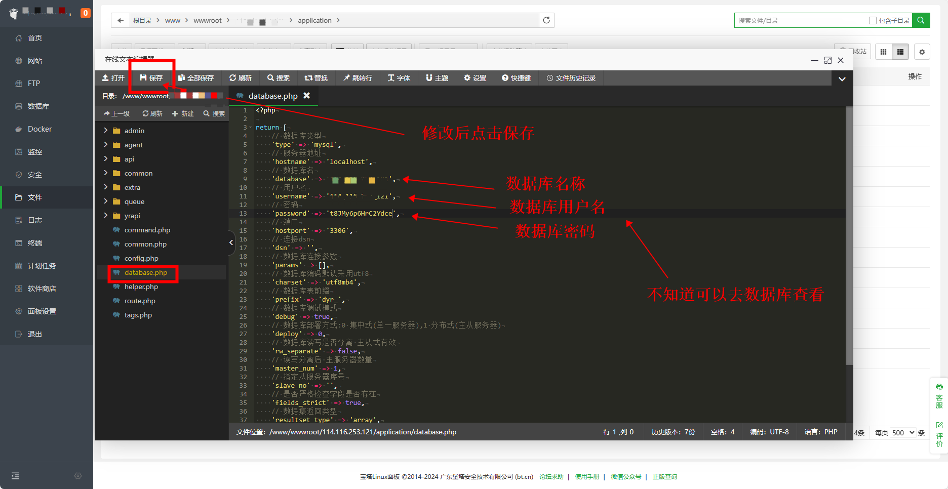 2,修改下图文件中的数据库信息,保存,