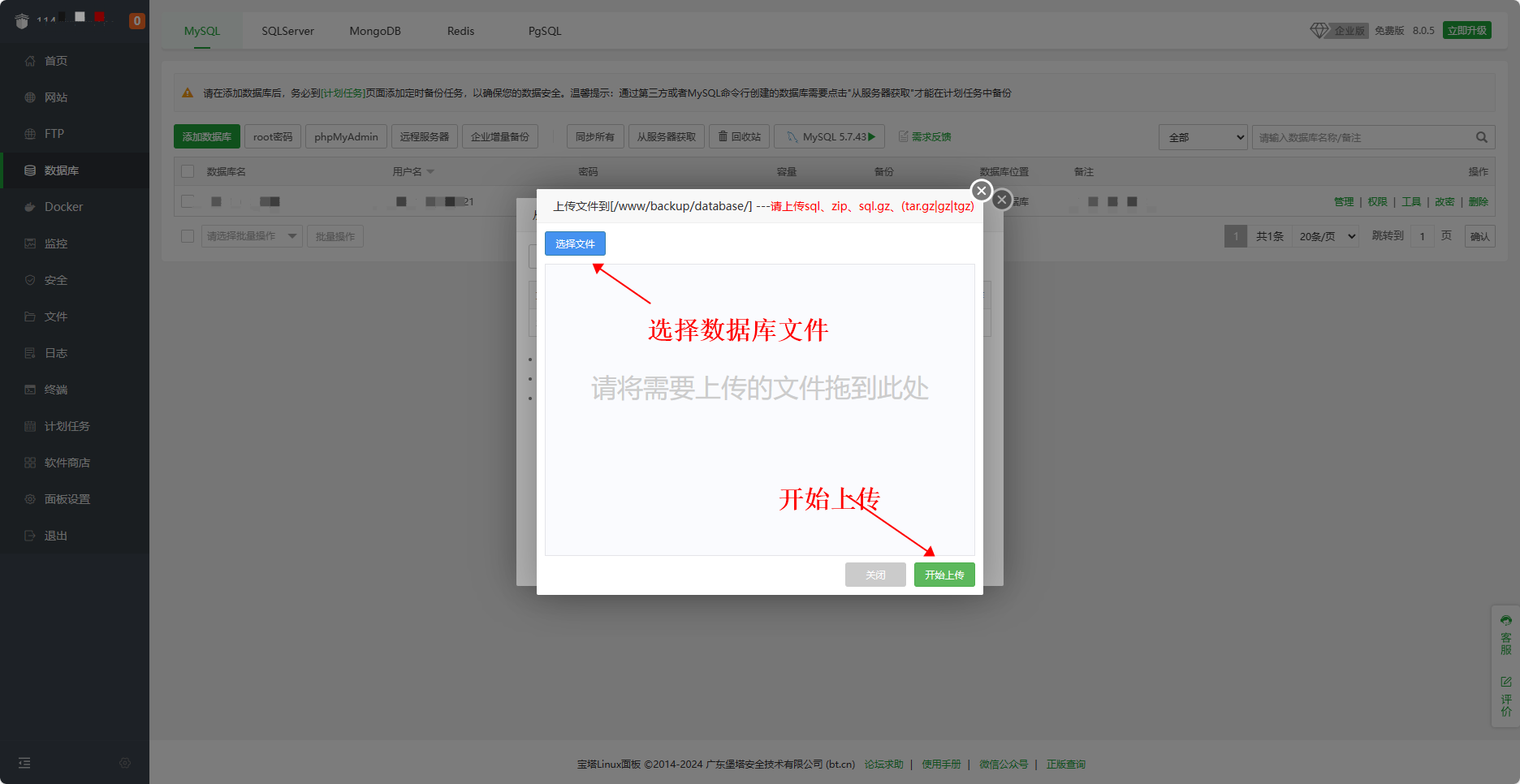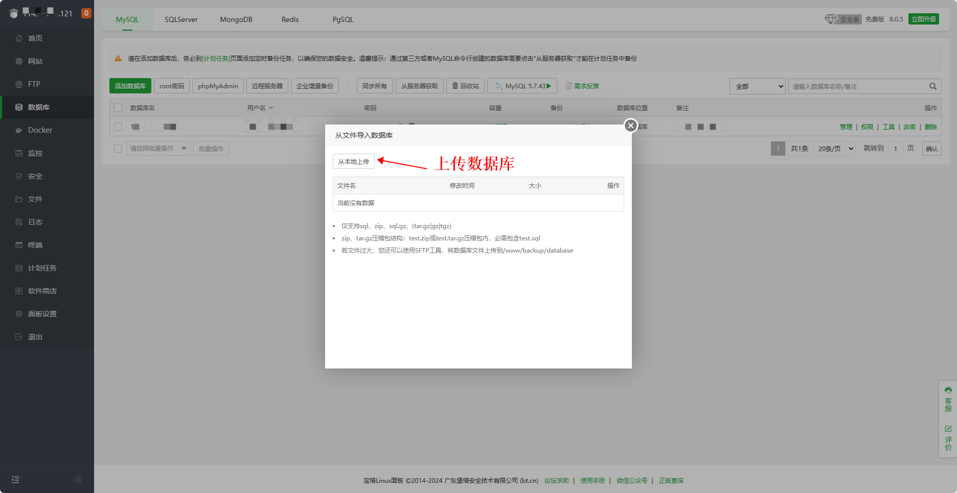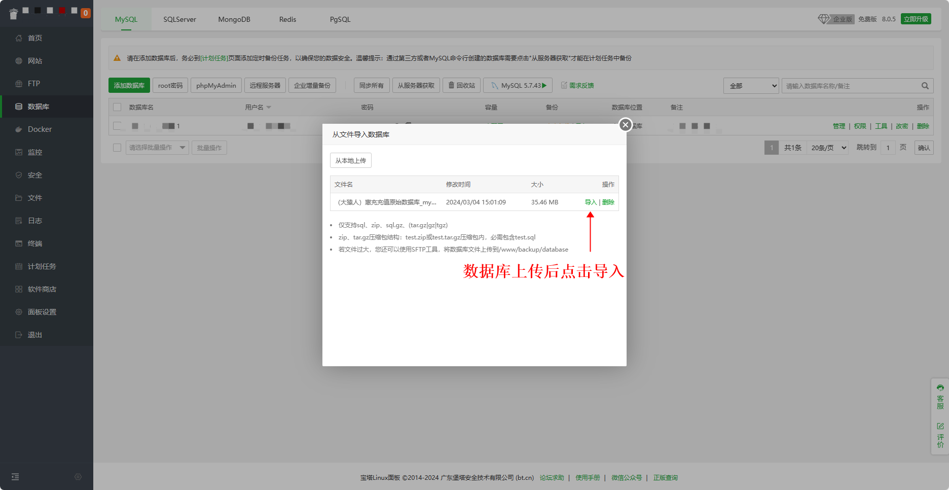 3、导入数据库文件,