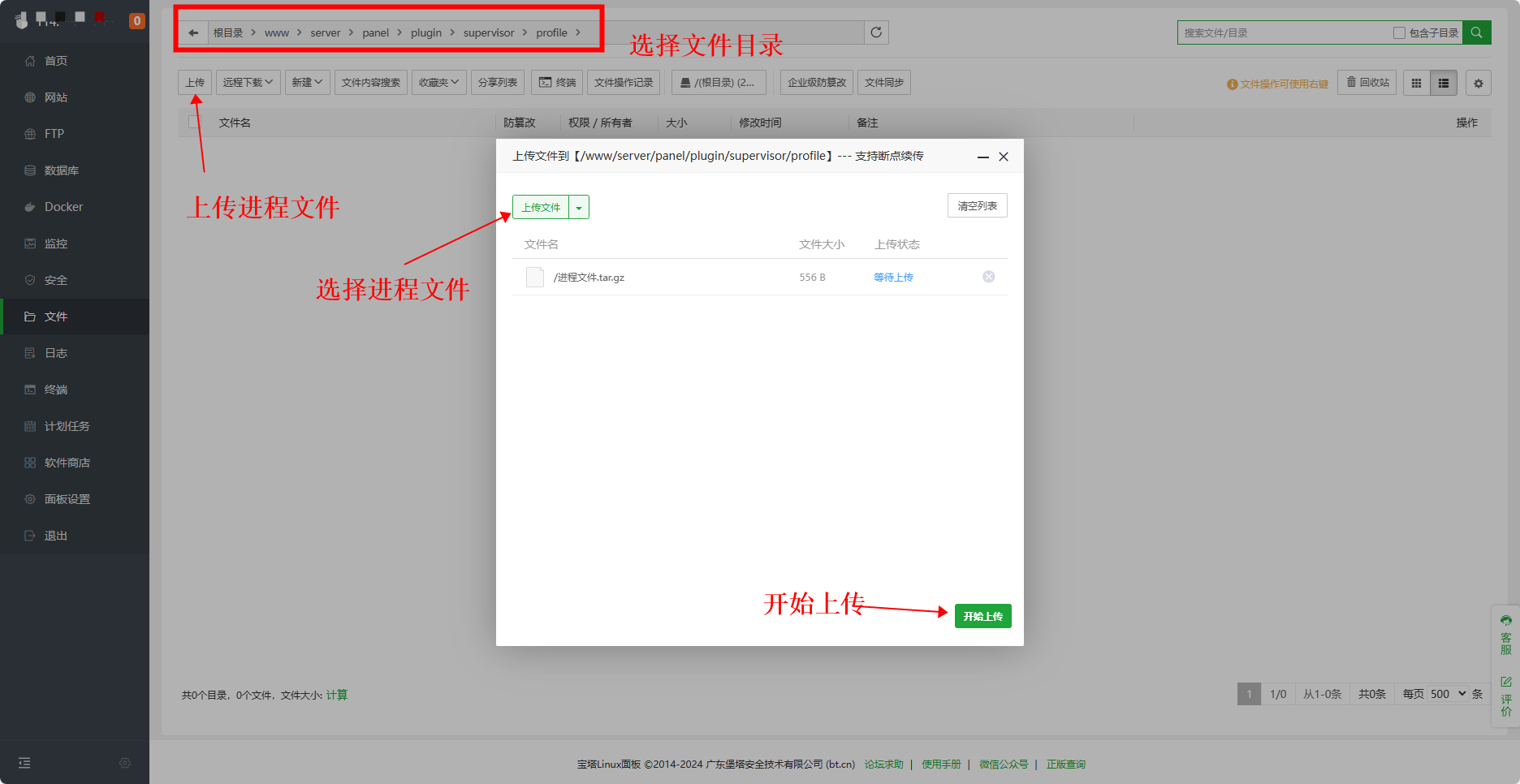 5.上传进程文件至如下目录中