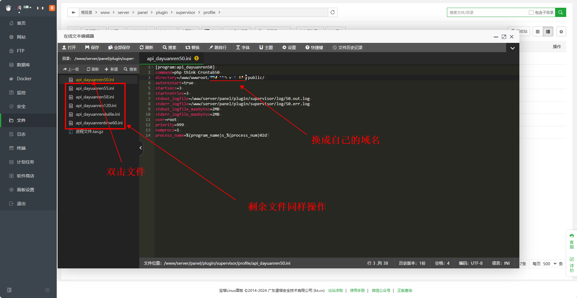 更改每个进程文件的目录地址为自己站点的目录地址,