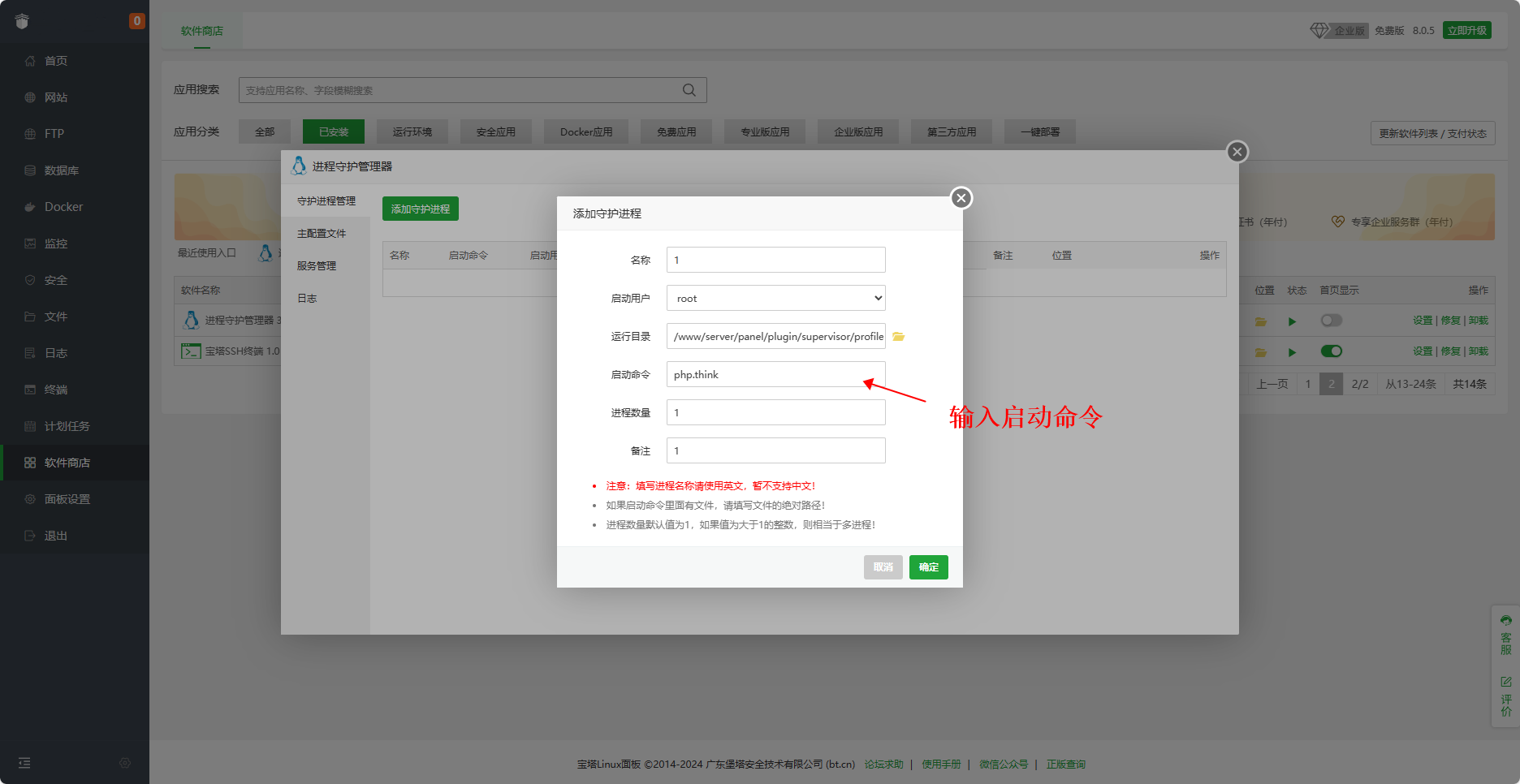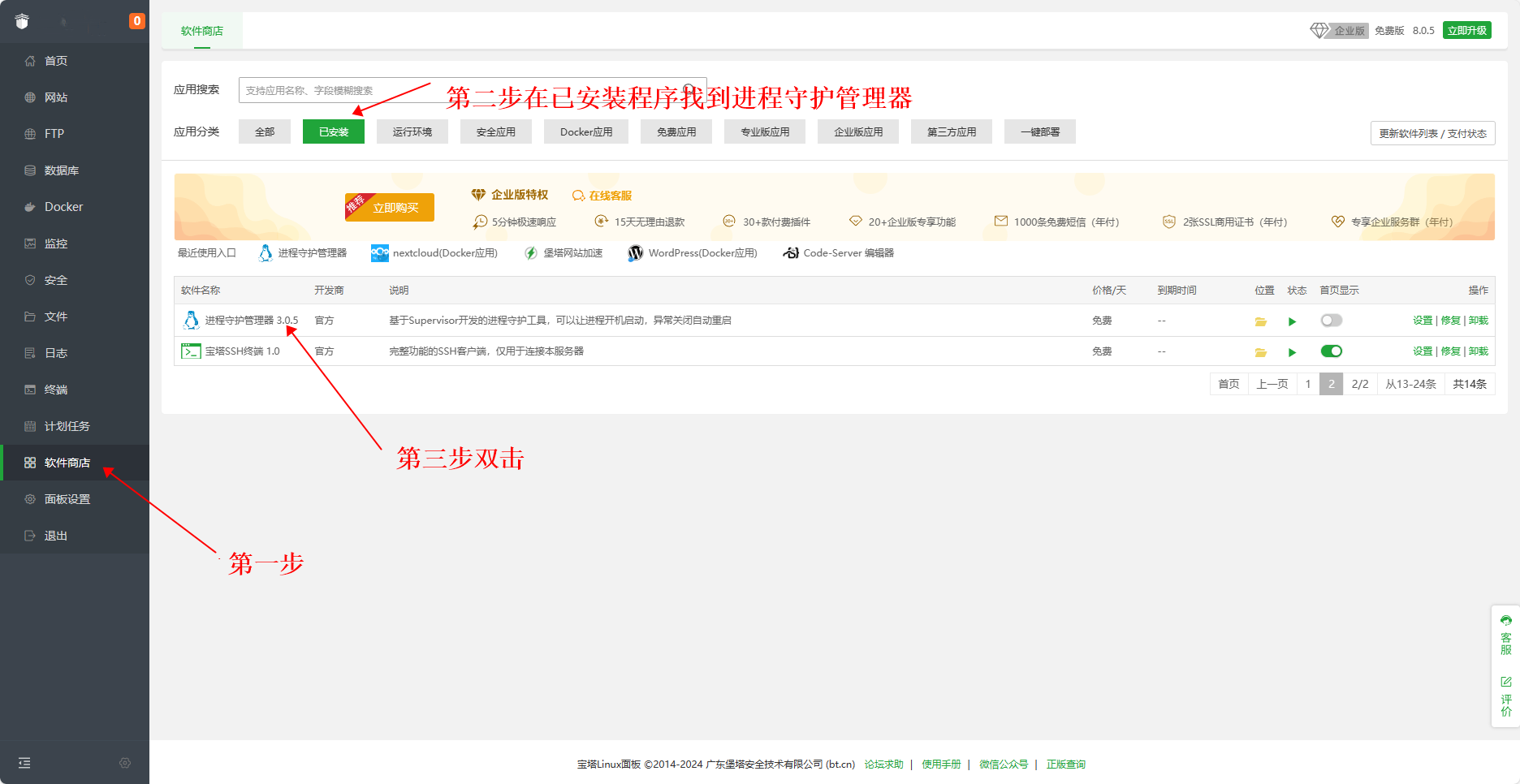 安装插件:进程守护管理器