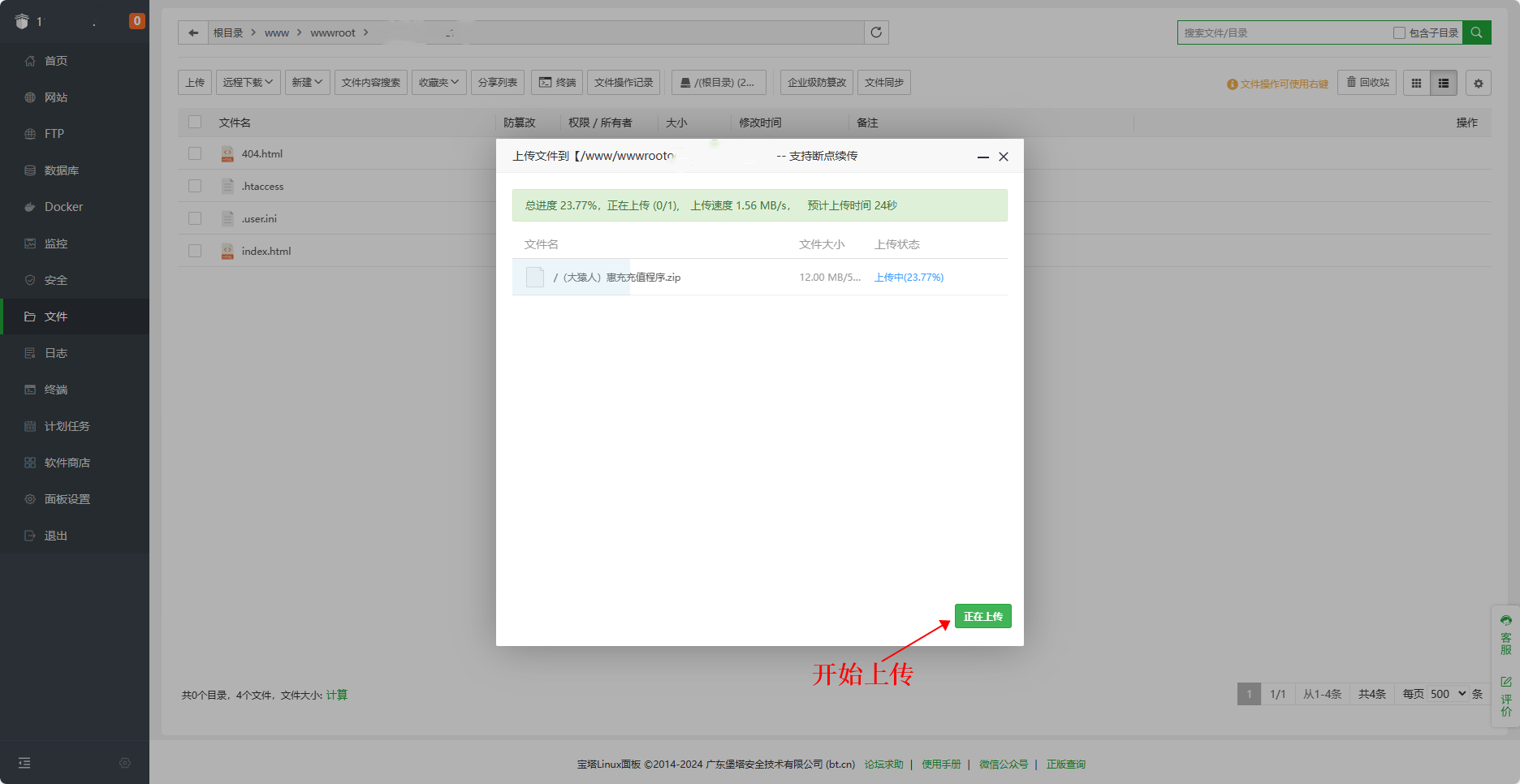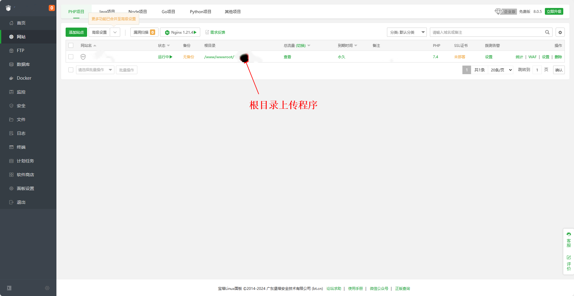 新建站点,上传程序文件到根目录,解压到根目录,