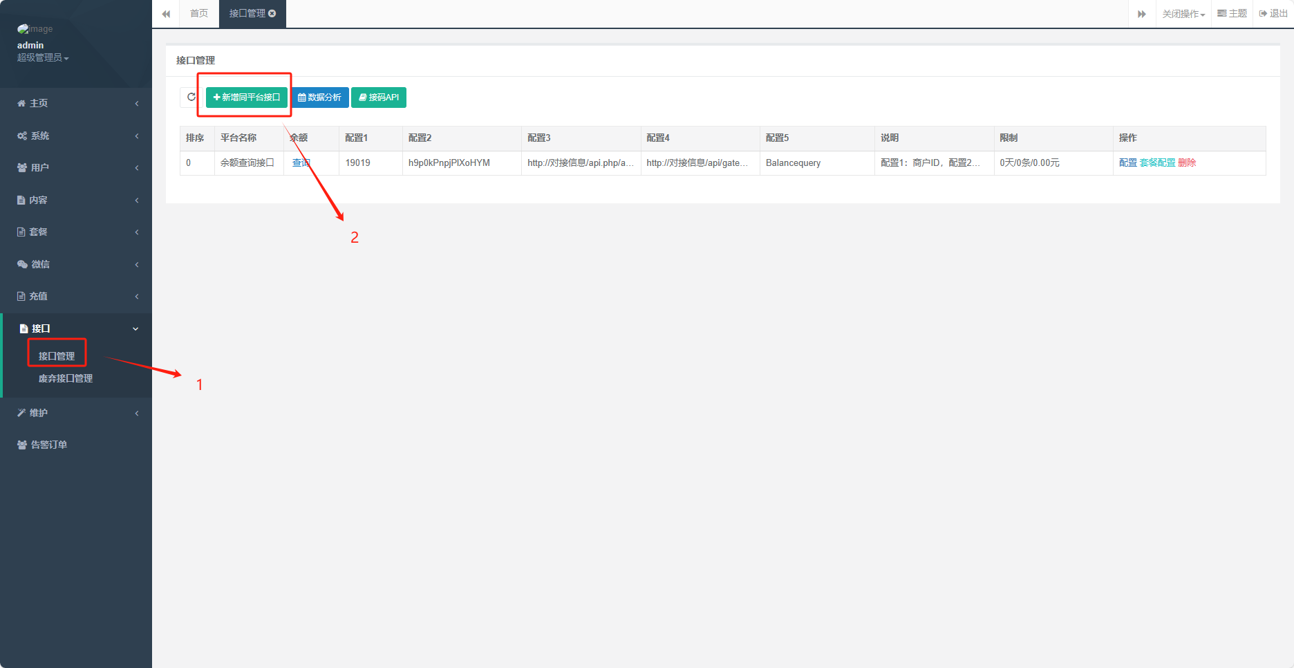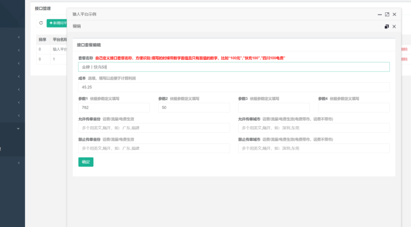 注意:一定要和刚才接口管理增加的套餐对应上,剩下的可以自己慢慢去研究。