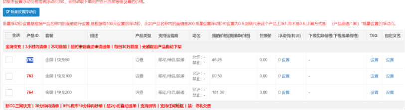 接口处上架套餐和你上家的代理平台产品ID对应,套餐管理上架和你接口处的套餐对应