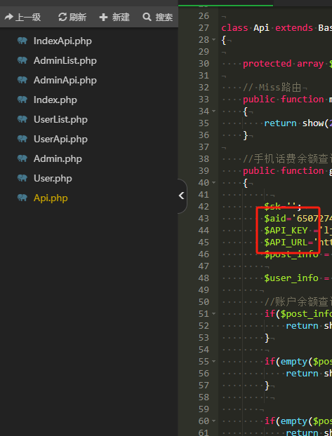 5、目录 /app/controller 文件夹内 有个api 文件 打开设置key和id 即可正确对接